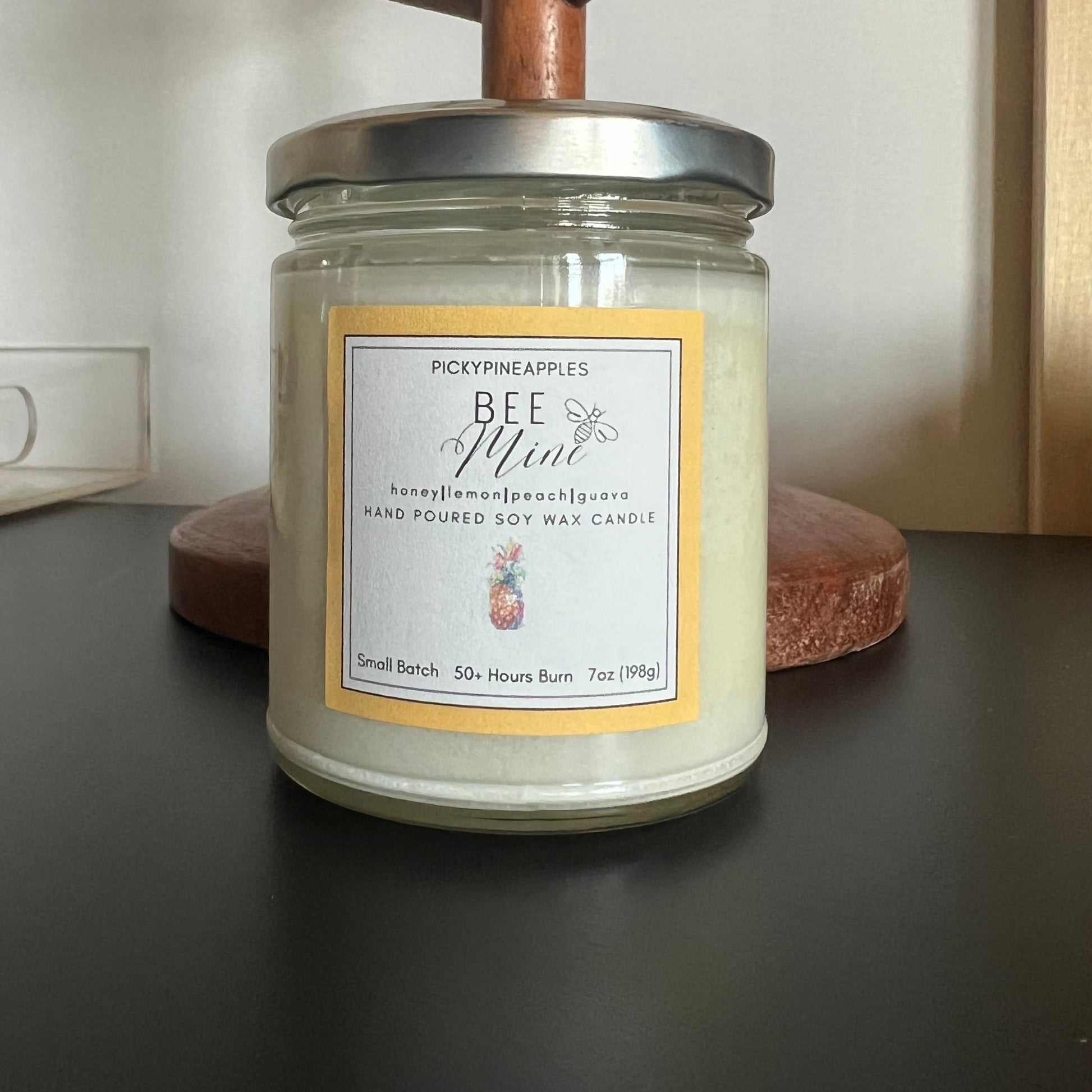 Indulge in the sweet and irresistible aroma of our Bee Mine Candle. Hand poured with natural soy wax, this candle is infused with the delicious scents of honey, lemon, peach, and guava. Relax and unwind as the cheery fragrance fills your home, leaving you feeling a bit sweeter than before.