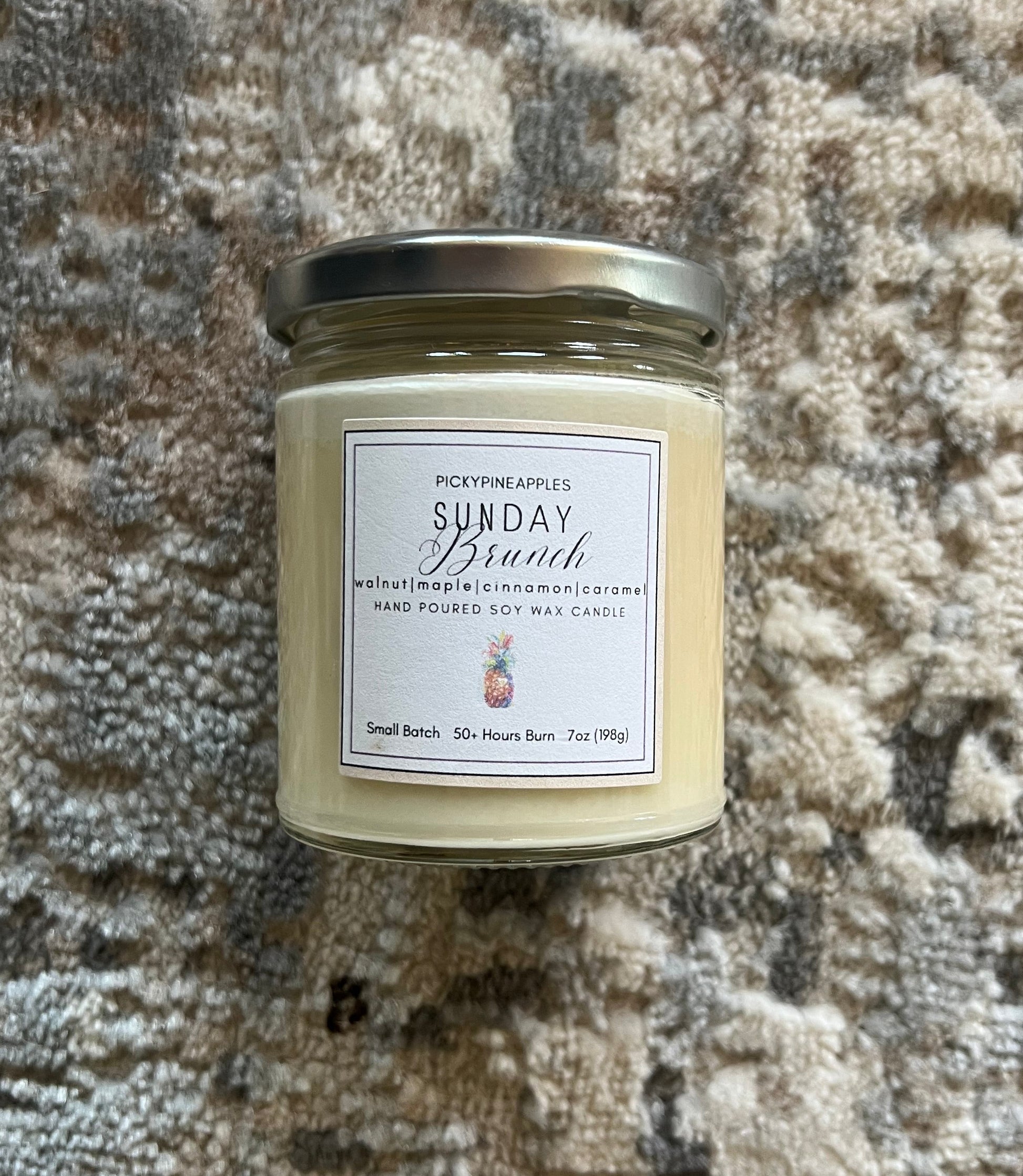 Savor the inviting scents of walnut, maple, cinnamon, and caramel with our hand poured Sunday Brunch Candle. Made with natural soy wax, this candle adds a warm and cozy atmosphere to any space. Perfect for a relaxing morning or a cozy evening in.